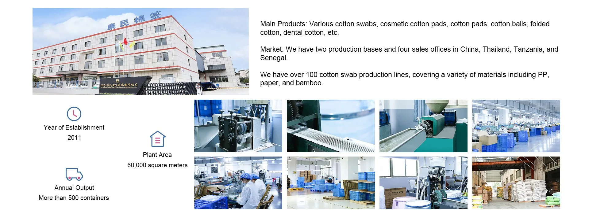 Zhejiang Kangmin Medical & Healthcare Manufacturing Co., Ltd. was established in May 2011, specializing in the production and sales of various cotton swabs, medical consumables, bamboo, and wooden products. We have obtained various certifications, both domestic and abroad, including ISO9001, BSCI, CE, SGS, etc.